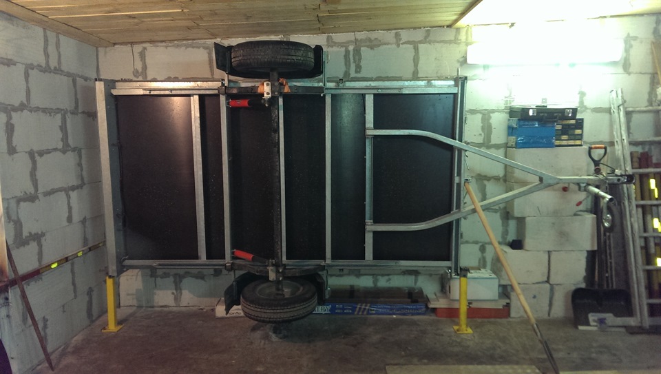 Самым надежным и простым в повседневной жизни способом хранения прицепа-скифа является фиксация на одной из боковых стен бокса. Для этого нужно выполнить 3 условия: