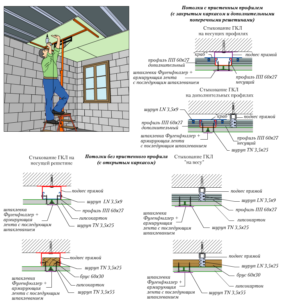 Схема обшивки потолка гипсокартоном