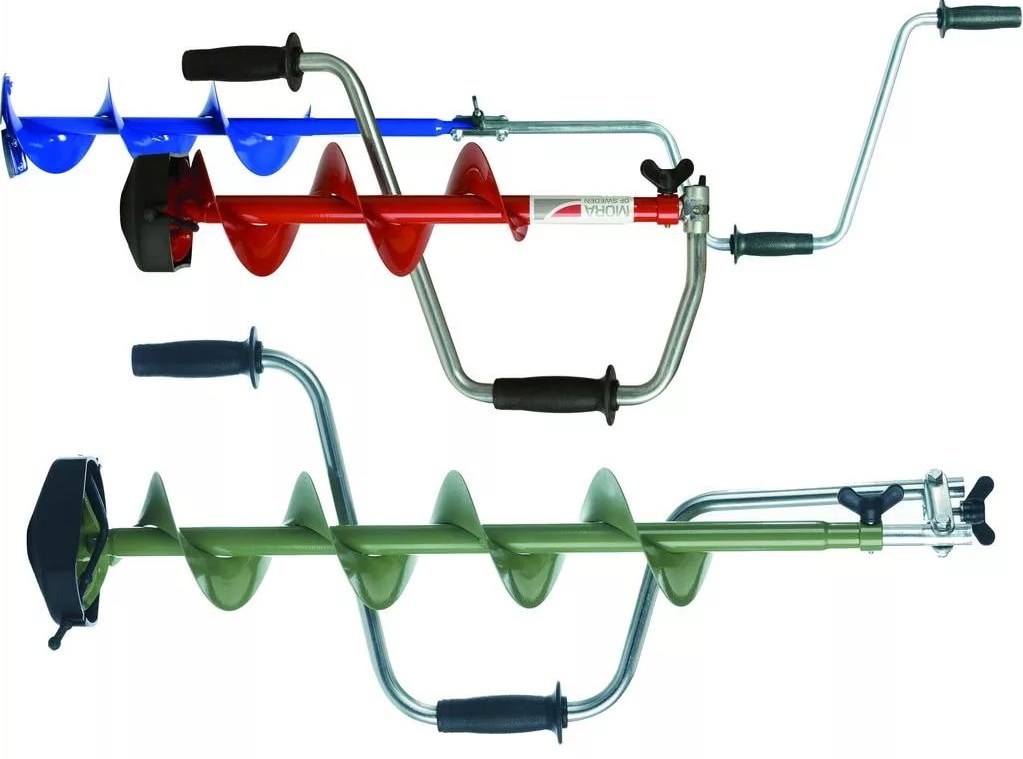 Существуют модели со сменными шнеками, что позволяет, при установке соответствующей оснастки, бурить и лед, и землю.