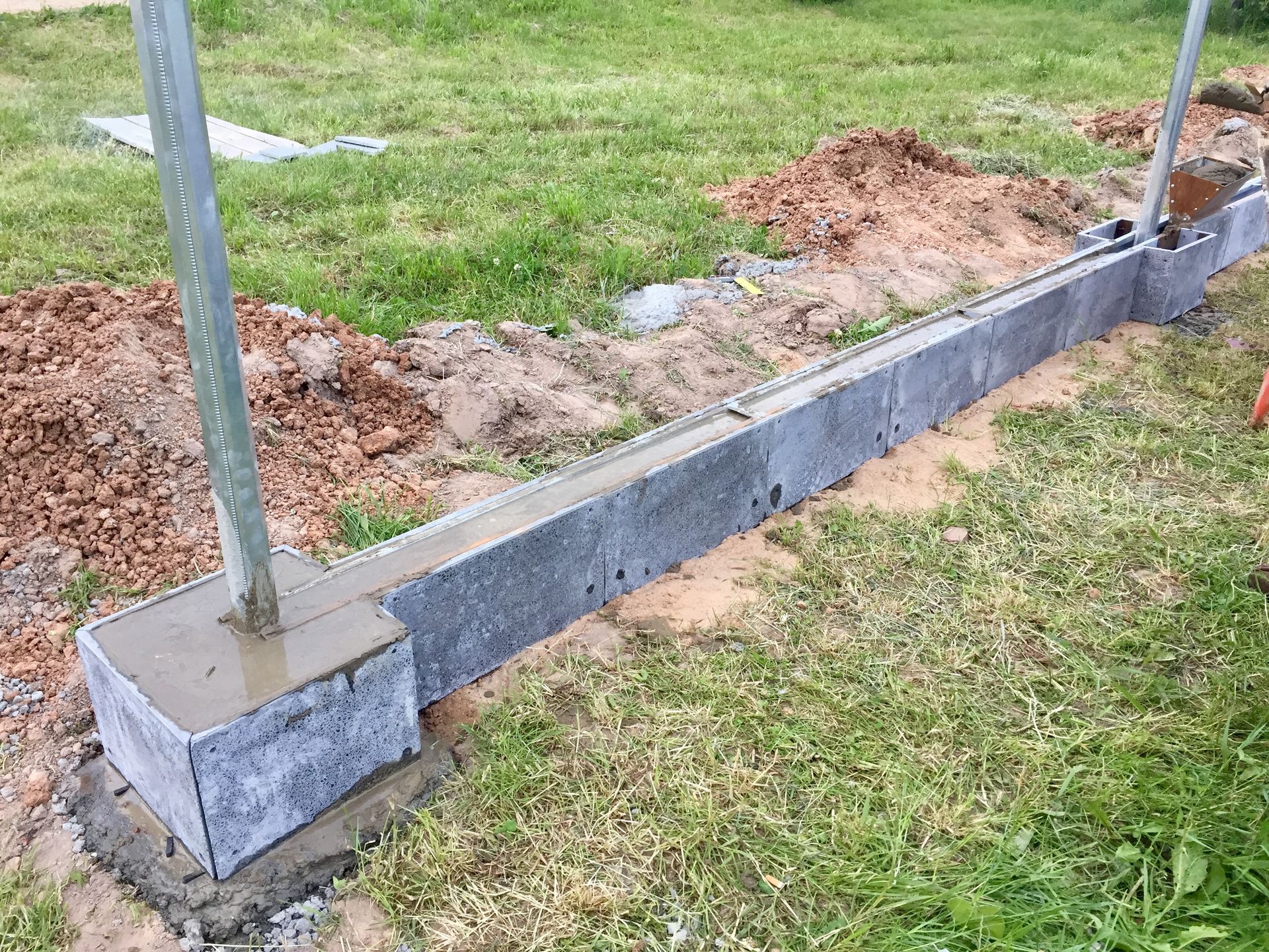 Установка и заливка столбов для забора ленточным способом включает в себя следующие действия:
