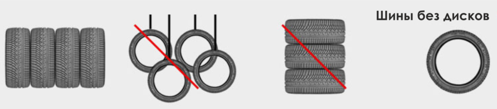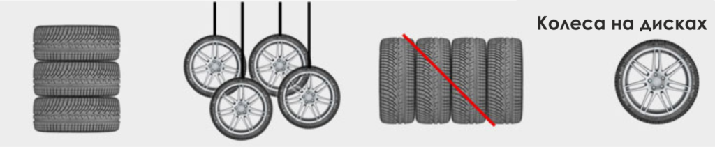 Важно не ставить в ряд шины с дисками. Тяжелые диски будут давить на покрышки снизу