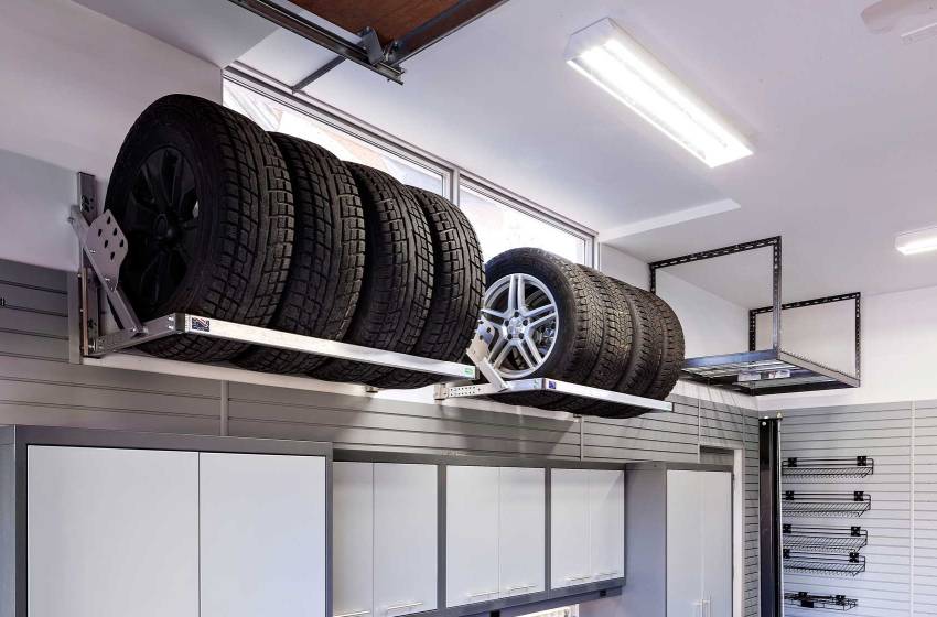 - специальные системы хранения колес помогут оптимизировать пространство в гараже.