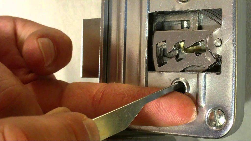 Выбранный инструмент необходимо вставить в замочную скважину, постараться зацепить запирающую деталь, покрутить несколько раз в разные стороны и замок разблокируется.