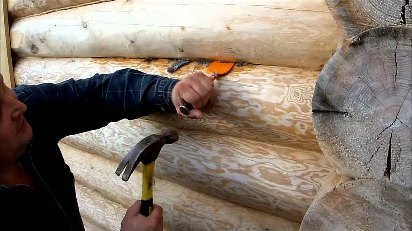 Если при подъёме дома вы поздно заметили, что забыли отсоединить окладной венец, то придётся конопатить весь сруб, потому что от подъёма брёвна оттянет дуг от друга.