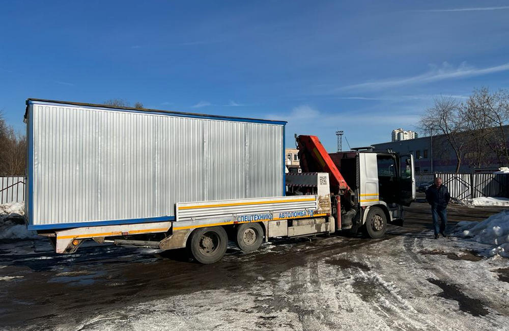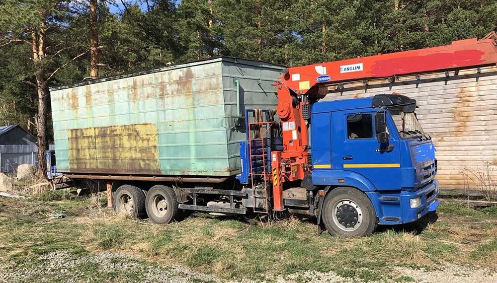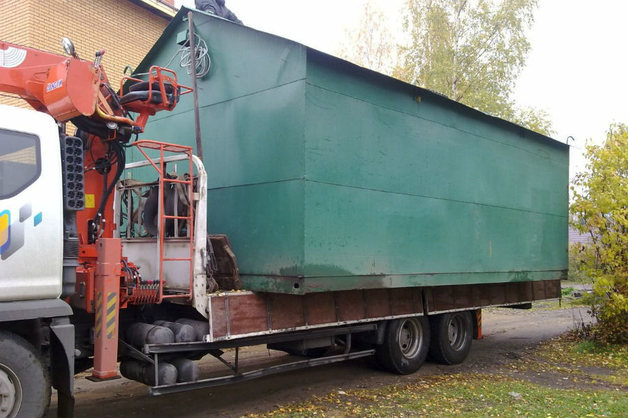 Удобнее всего перевозка металлического гаража выполняется манипулятором. Так одна техника может погрузить, доставить объект и выгрузить в пункте назначения.
