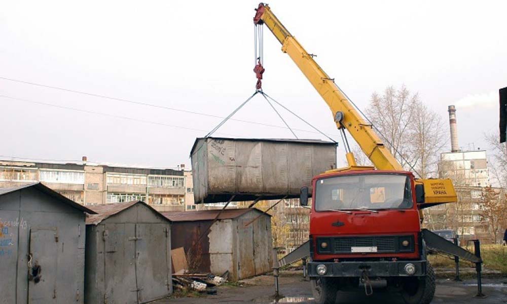 Иногда обычным краном-манипулятором, установленном на грузовом автомобиле, извлечь гараж не получается. Тогда придётся заказывать отдельную технику, имеющую большой вылет стрелы. Так гараж можно перенести через другие конструкции и объекты.