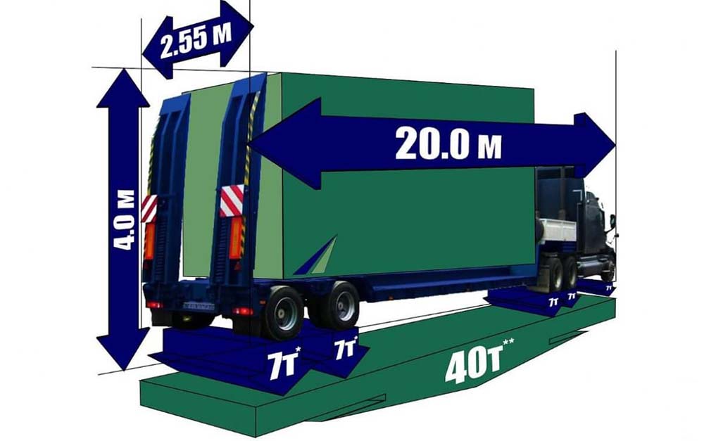 - ширина машины с грузом больше 4 метров, а длина превышает 20 метров.