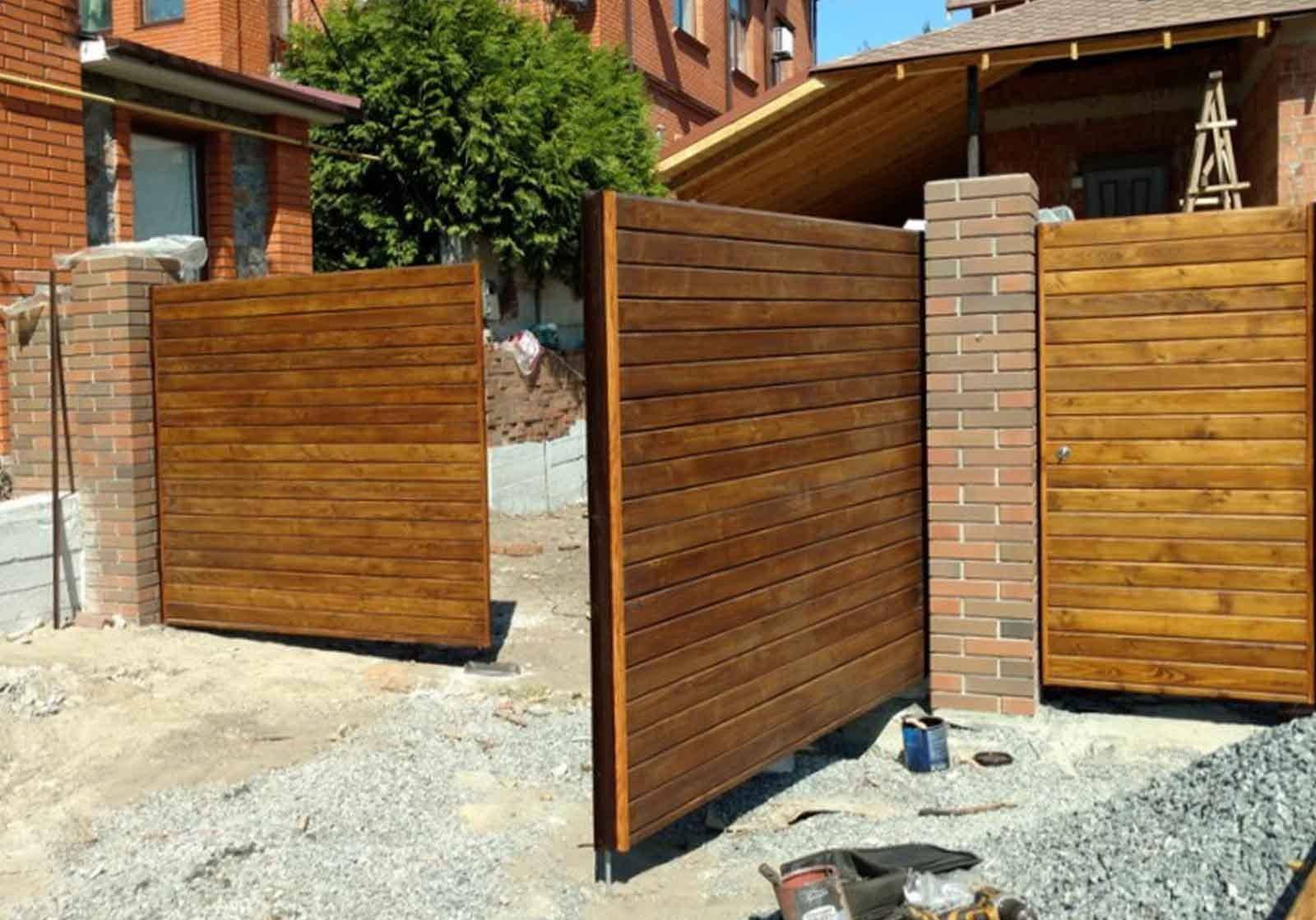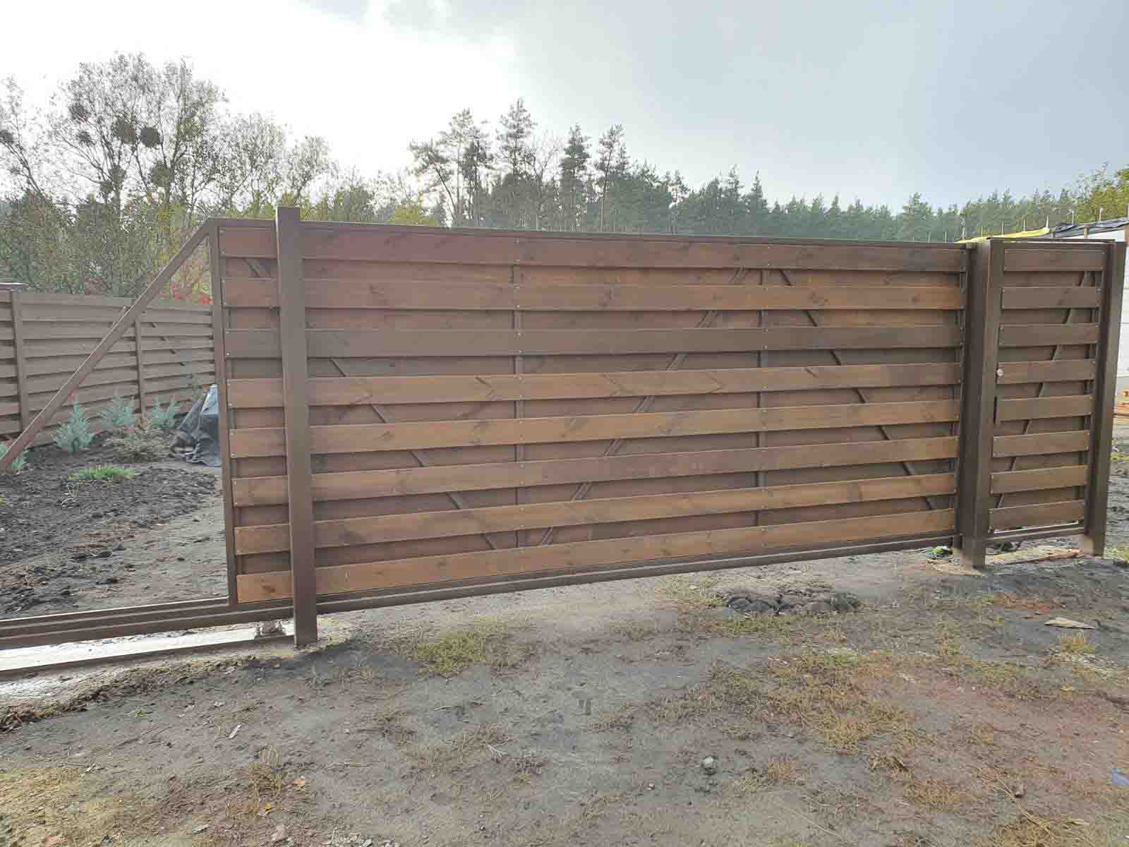 Откатные ворота из дерева и металла
