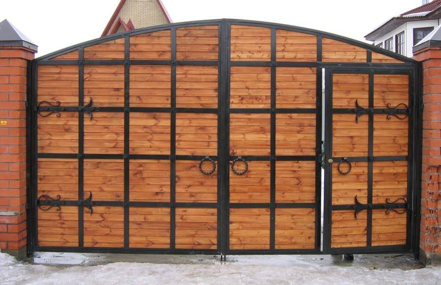 Фото — деревянные ворота с элементами ковки