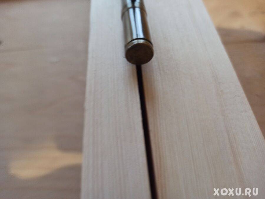Чтобы тесины полотна не расползались, соединим их между собой с помощью клея и мебельных шкантов.