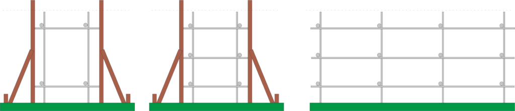 - Сваи-стояки (стоячие, подпорные), после прохождения слабых слоев, достигают твердых и прочно упираются в основание концами.