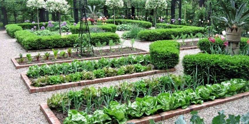 Французский огород формируется по законам симметрии, грядки чередуют с клумбами. Строгая планировка подчеркивает красоту зданий. Классический вариант не всегда уместен. Любители природы ценят английские варианты огородов с газоном, вертикальным озеленением.