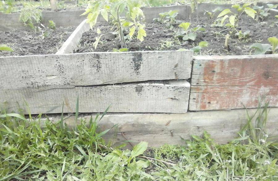 Для изготовления грядок совсем не обязательно использовать исключительно новый пиломатериал, вполне подойдут доски, лежавшие годами под навесом или в сарае