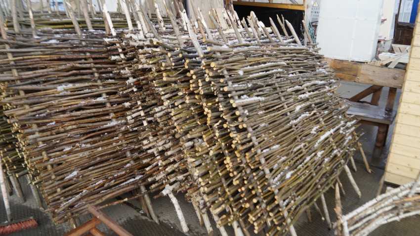 Когда прутья срезаны, их следует просушить в естественных условиях и уложить на хранение небольшими пучками. Если планируется создание большого забора, понадобятся ветки диаметром около 20-30 мм, а вот небольшое ограждение получится из лозы, диаметр которой не превышает 10-20 мм. Желательно, чтобы после заготовки прутки «отлежались». Если есть время, нужно выделить для этого 3-4 месяца. Это обеспечит простоту снятия коры и отсутствие необходимости в обработке.