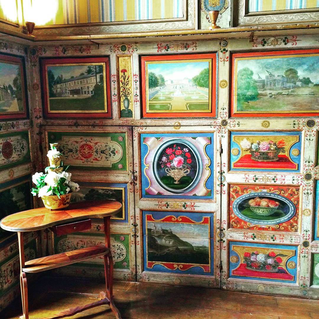 Замаскировать двери в тайную комнату можно и с помощью оригинального панно. В результате вместо дверной конструкции можно получить настоящий шедевр, в котором конструкция будет смотреться в интерьере как самостоятельная картина, а рама выступить в роли наличников. Для этого правильно наклеить на дверное полотно фотообои или расписать поверхность акрилом. Так, можно продумать эксклюзивный дизайн, и в то же время спрятать выбранное помещение от чужих глаз.