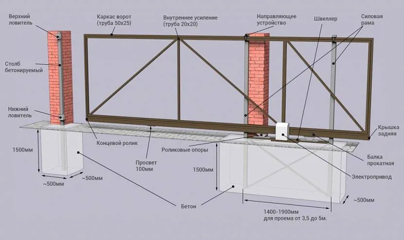 - высокая прочность сооружения, чтобы в процессе эксплуатации откатных ворот столбы не шатались, не заваливались;