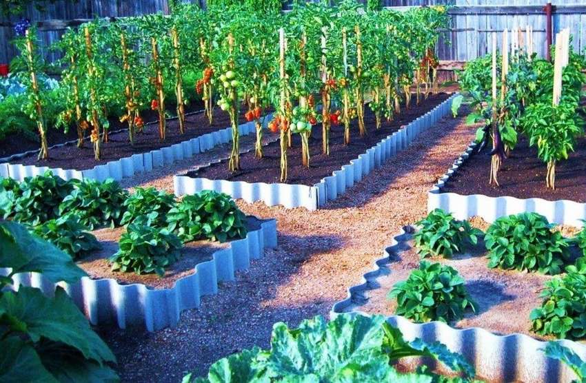 Красиво расположенные небольшие грядки придадут огороду привлекательный вид.