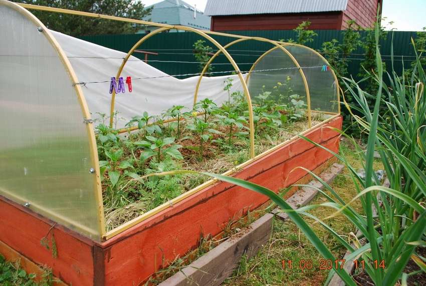- в высоких теплых грядках, богатых перегноем и ограниченных каркасом, часто заводятся медведки, борьба с которыми отнимает немало сил.