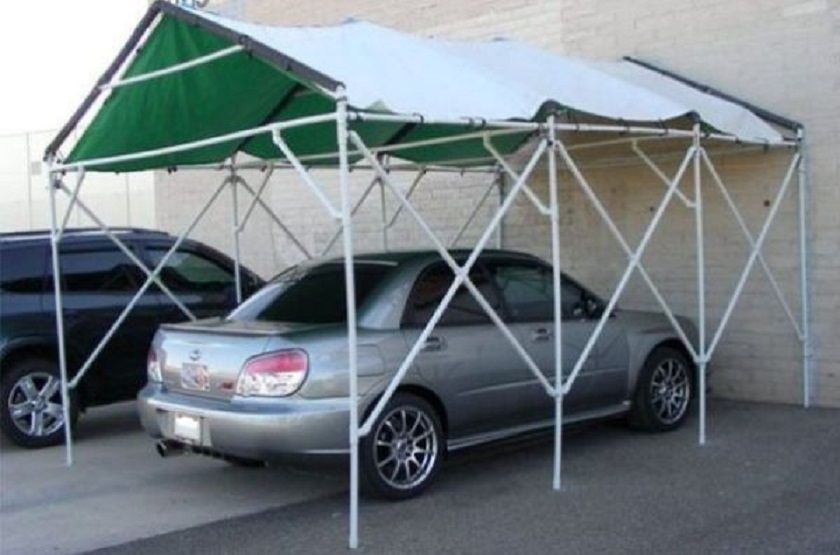 Еще одно полезное применение труб ПВХ. Он защитит транспорт не только от дождя, но и от палящего летнего солнца.