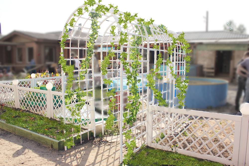 - Эстетичный вид. Пластиковые заборы из ПВХ можно использовать в качестве декоративного элемента на участке и выгодно подчеркнуть ими ландшафтный дизайн. Можно сделать калитки, украсить клумбы.