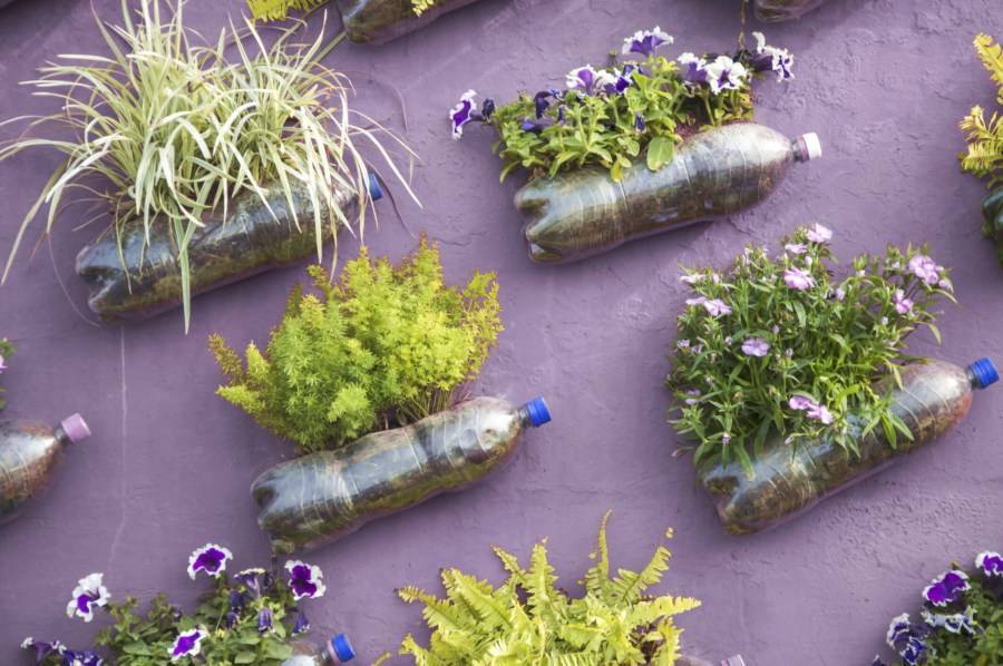 Вся конструкция должна выглядеть красиво и аккуратно, этого можно добиться подвешивать бутылки с расстоянием 40–50 см между ними. Растениям требуется достаточно свободного места, в противном случае они некрасиво сплетутся между собой. Но также желательно не подвешивать ряды синхронно, ведь тогда будет казаться, что не вся стена занята. Лучше все делать в порядке шахматной доски, каждый подвесной ряд, смещая на 20–25 см.