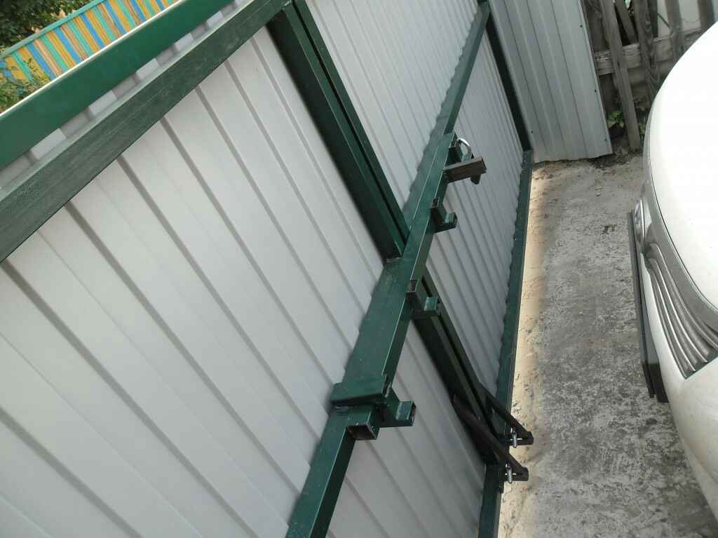 Заборы на дачных участках, ворота хозяйственных построек, гаражей часто делают из профлиста. Блокирующие устройства прикрепляют к подготовленным рамкам створок из профильной трубы или каркасам, сделанным из металла. Профтрубам отдают предпочтение те, кто ценит надежность. Металлические элементы более эстетичны, но менее прочны.