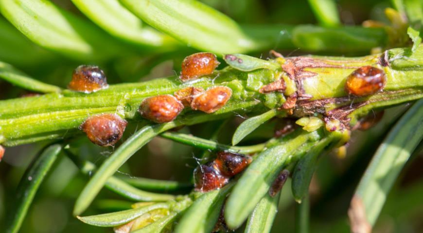 Нашествие насекомых сильно снижает защитные силы туи, она может пожелтеть и погибнуть