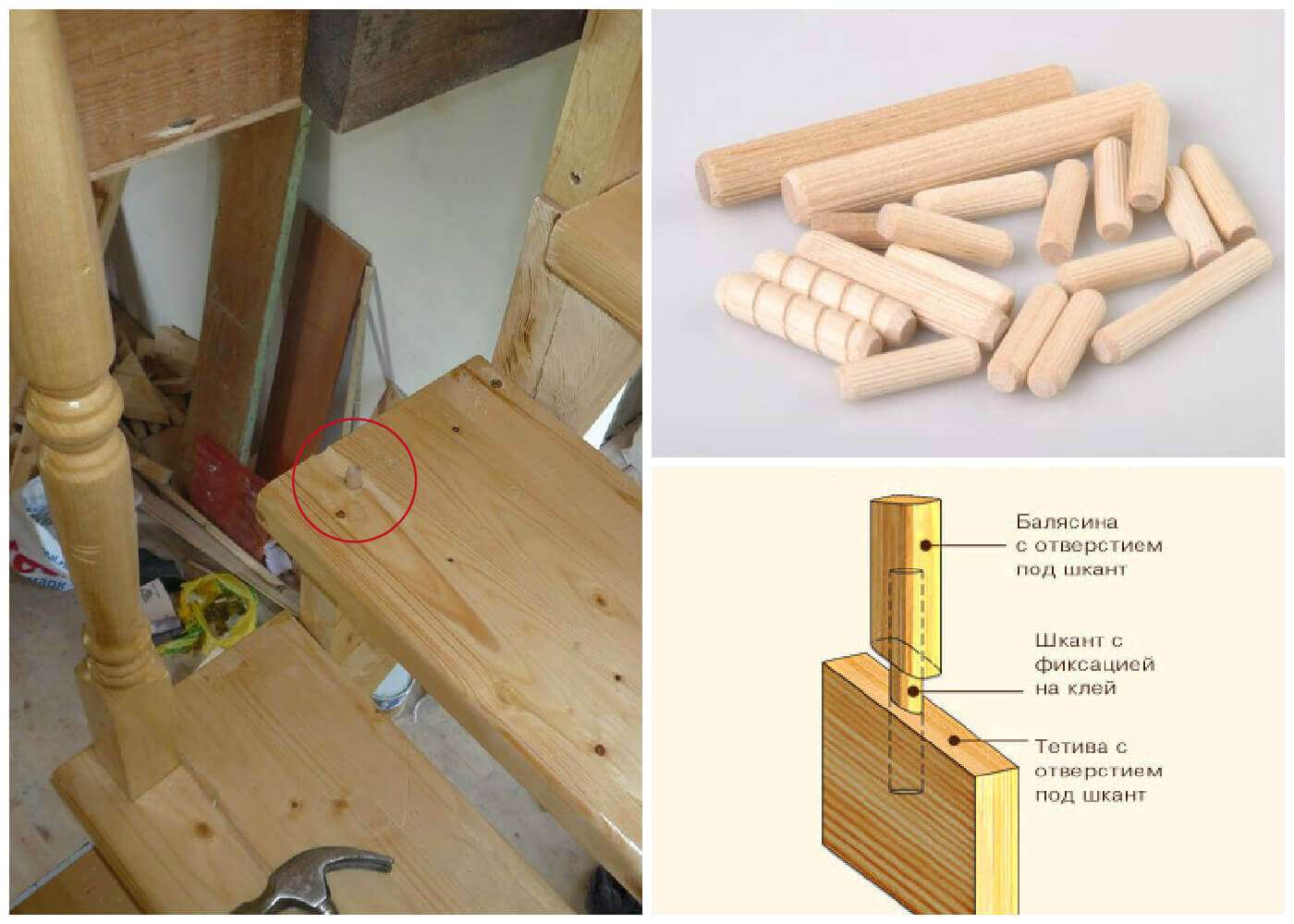 Для лучшего прилегания элементов, шкант изготавливается из той же древесины, что и лестница.