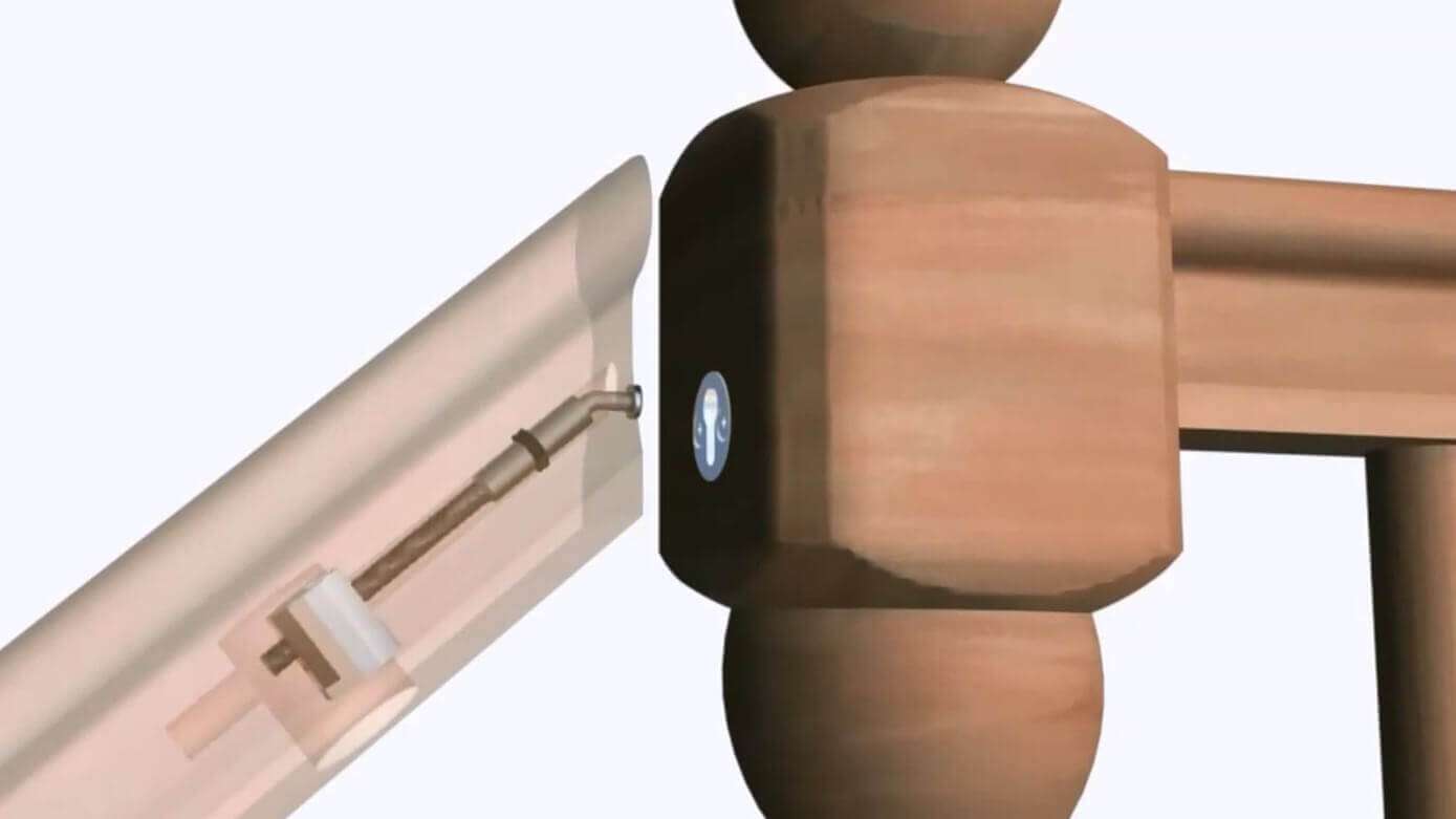 Метод удобный, надежный, позволяющий подтягивать крепления, но достаточно дорогой. Зип-болт представляет собой резьбовую шпильку со съемным редуктором на одном конце. Ещё одна его разновидность – две шпильки с шарнирным соединением – удобный крепеж для соединения двух элементов под непрямым углом. Его используют для закрепления перил на верхней части балюстрады.