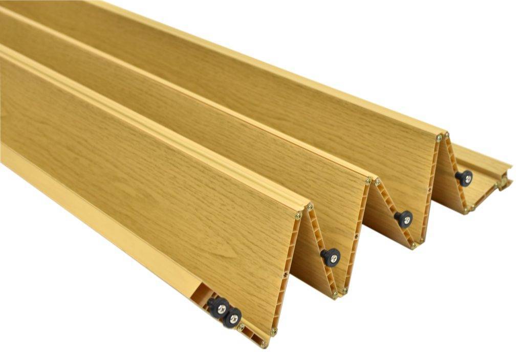 Двери из дерева всегда пользуются спросом благодаря своей натуральности, долговечности, полезности для здоровья. Из всех вышеперечисленных материалов двери-гармошка межкомнатные из дерева самые дорогие. Так как они тяжеловесны, то и конструкция для их удобной эксплуатации требуется серьезная, а это стоит недешево.