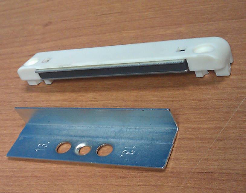 В сравнении с предыдущим вариантом магнитная защелка на пластиковую балконную дверь на порядок проще и надежней. Здесь на створку прикручивается обычная стальная пластина, а на раму балконного блока крепится ответная планка с магнитом внутри. При закрывании магнит захватывает пластину и удерживает дверь.