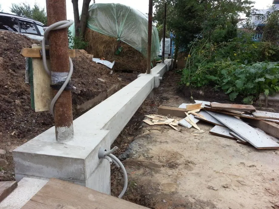 Для решения проблемы первым способом между двумя-тремя соседними столбами забора выкапывают неглубокую траншею (на штык лопаты). Если столбы металлические, их можно объединить, приварив между ними круглую или профильную трубу. Для опор из других материалов лучшим выбором будет устройство МЗЛ. Для этого в выкопанной траншее выстраивают опалубку, укладывают в нее армирующую сетку и заливают бетон. Столбы предварительно выравнивают по вертикали. Это самый надежный способ укрепления ранее установленных столбов.