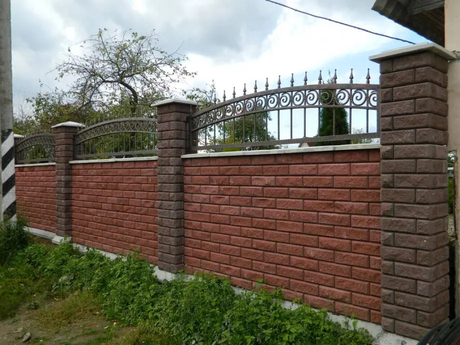 Конструкция считается тяжелой, если не только столбы, но и пролеты ограды изготовлены из кирпича или камня. В таких оградах используется дополнительные элементы: