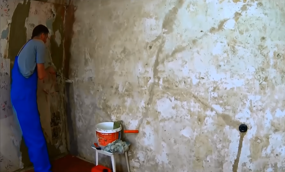 Перед нанесением грунтовки с поверхности удаляются все финишные и основные покрытия. Стену следует полностью очистить от остатков обоев, краски, штукатурки. Также следует снять защитный глянцевый слой. После этого: