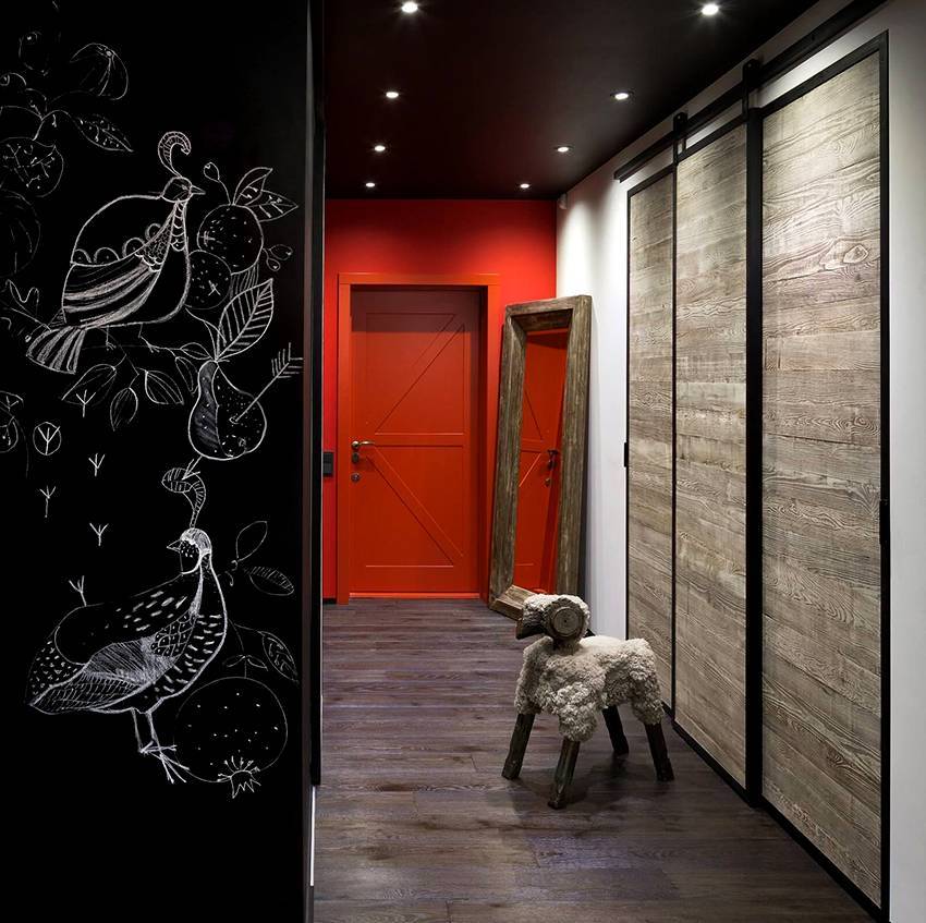 При использовании данных стилей дизайнеры рекомендуют, чтобы цвет двери перекликался с настенным покрытием, полом или мебелью.