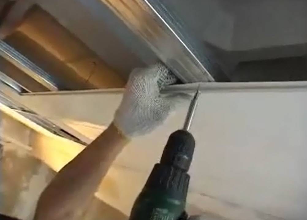 - На расстоянии 10-15 см под потолком на ребро устанавливается профиль и с помощью саморезов фиксируется либо к самим плитам, либо к стенам гаража.