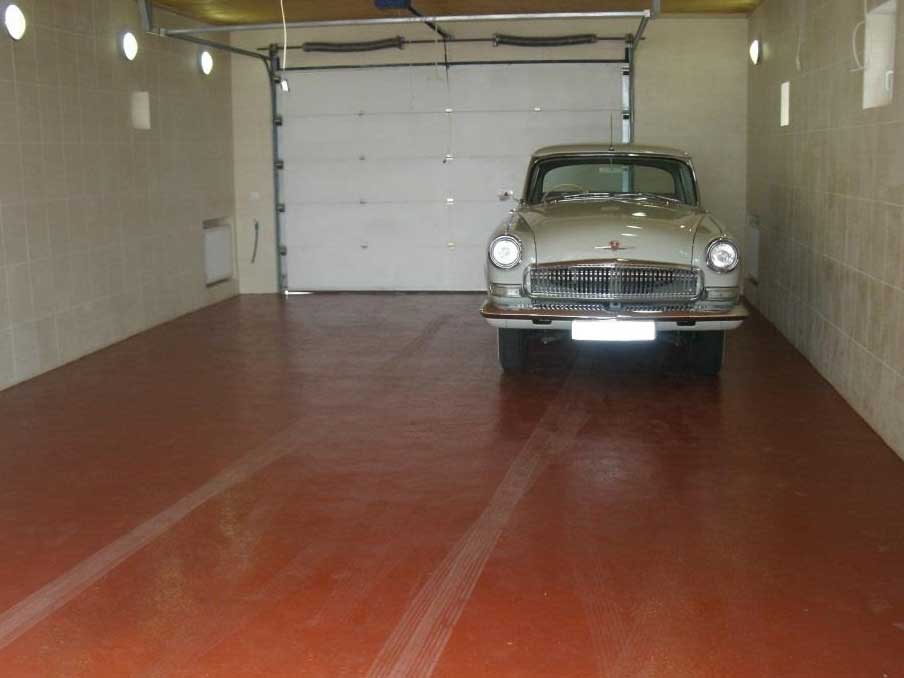 Согласно отзывам владельцев гаражей, для легковых машин достаточно залить армированный бетонный пол толщиной 70 мм (без учёта амортизирующей «подушки»). После чего нанести 2 слоя грунтовки и обновлять покрытие каждые полгода. Оптимальная марка бетона – М300.
