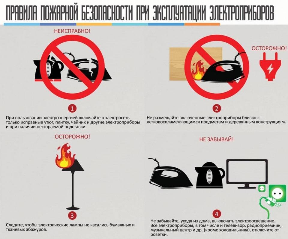 - Выключение перед уходом и на ночь электроприборов из электросети. Кстати, такой метод не только поможет уберечь от пожара, но и сможет сэкономить электричество. Ведь даже если приборы выключены и не используются, но подключены к электросети, потребление электроэнергии, пусть и минимальное, продолжается.