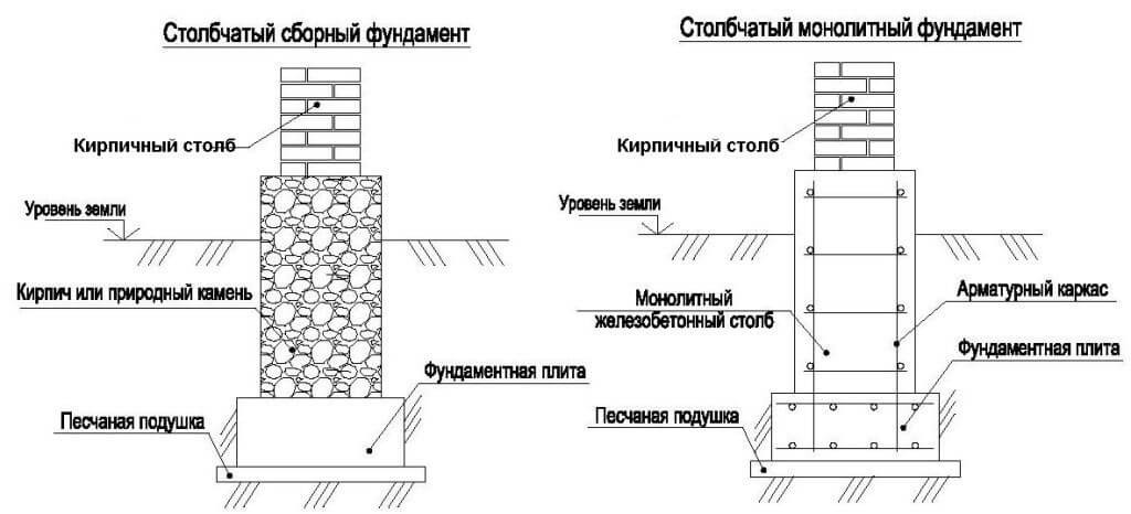 Столбчатое основание для кирпичных столбов и заборов