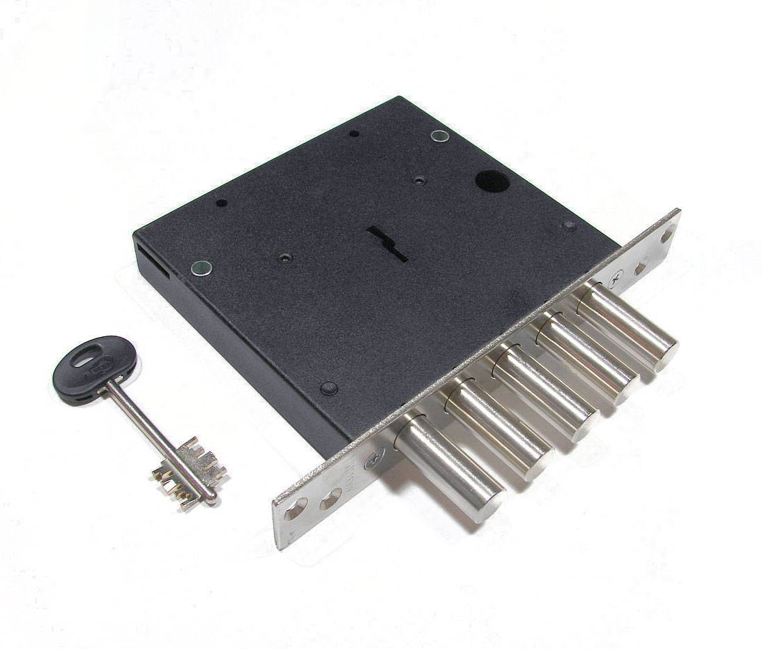 Основой такого замка является цилиндр, срабатывающий на определенную комбинацию ключа. Запорный механизм такого типа является популярным, но для входной двери он не очень подходит из-за легкости взлома и выбивания. Для усиления замка используется дополнительная защита в виде бронированных накладок или шариков внутри механизмов. Благодаря накладкам будет невозможно выбить замок, а шарики предотвратят его высверливание.