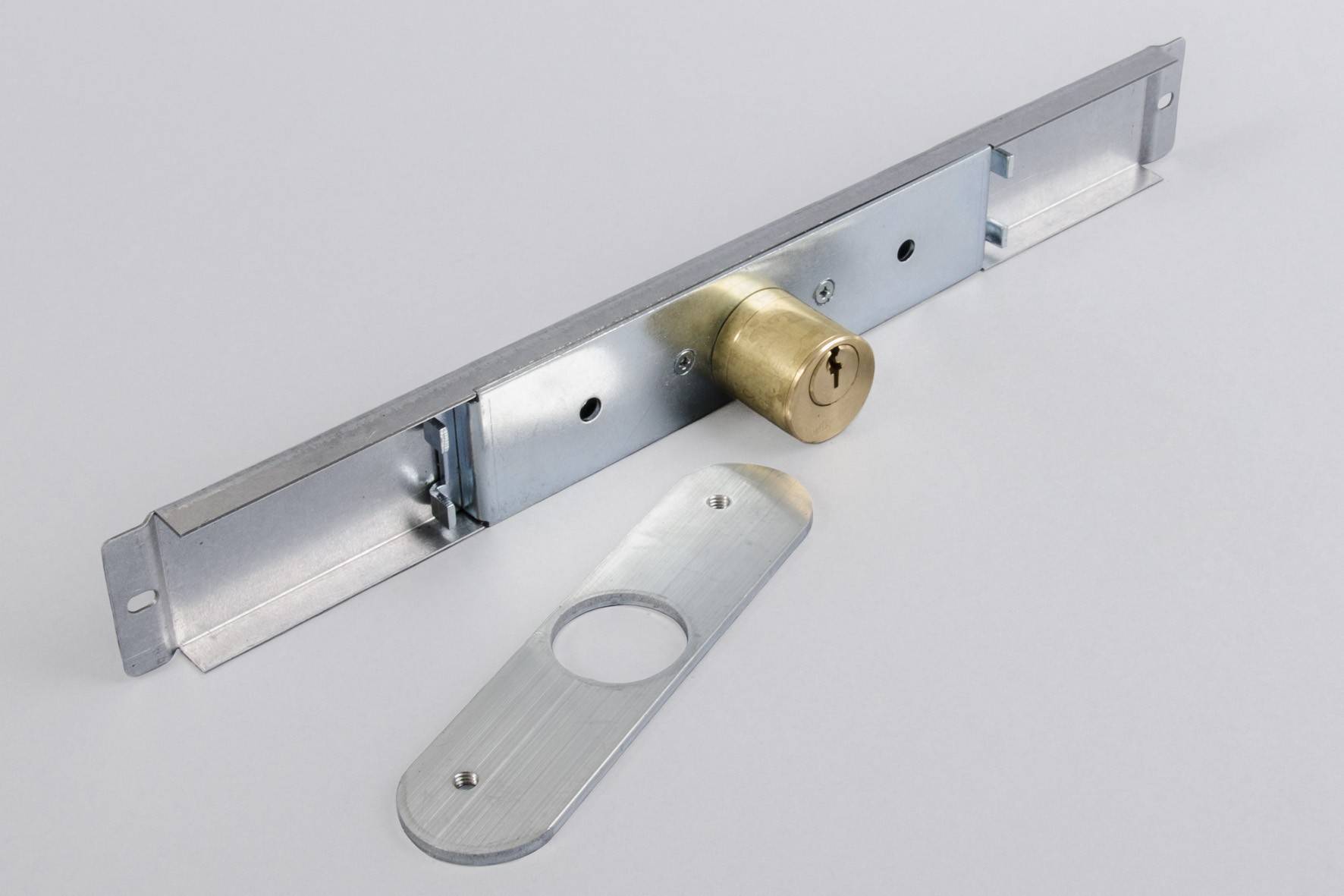 - Чтобы избежать вбивания ригелей отжимом полотна и деформацией запоров ударами, используются блокирующие пластины.