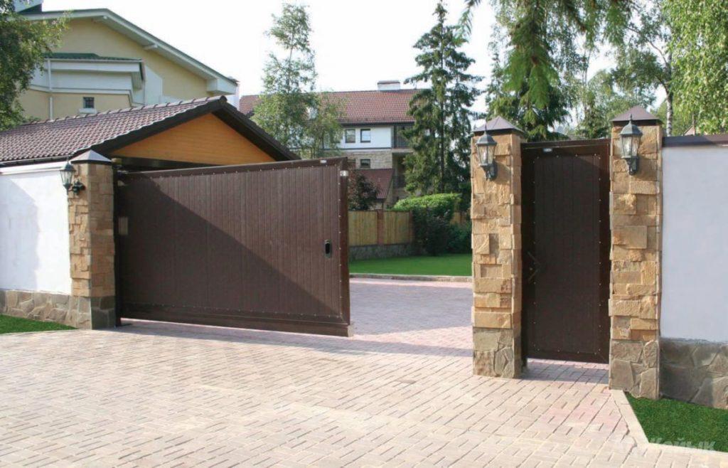 В таком случае калитку и ворота разделяет ограничительный столб, служащий опорой для конструкции.