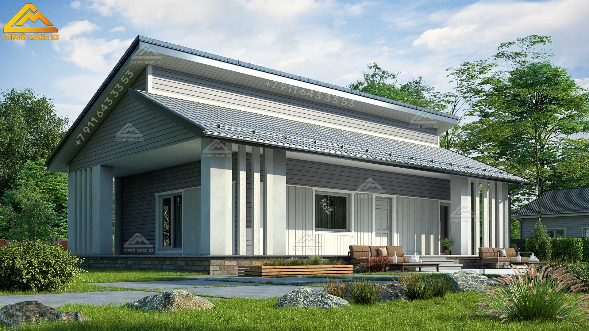 С этим нельзя согласиться. Каркасный дом — это лишь технология возведения. А его внешний вид зависит от отделки и архитектурных качеств проекта. Отделку применяют такую же, как для домов из каменных материалов: штукатурку, покраску, вентилируемый фасад с применением сайдинга, блок-хауса и др. Возможна также облицовка стен кирпичом, а цоколя камнем (стены отделывать камнем все же не рекомендуется). В архитектурном отношении проект каркасного дома не отличается от проектов зданий из каменных материалов, и почти любой из них можно переработать для каркасных конструкций. Таким образом, каркасный дом может иметь вполне представительный вид.