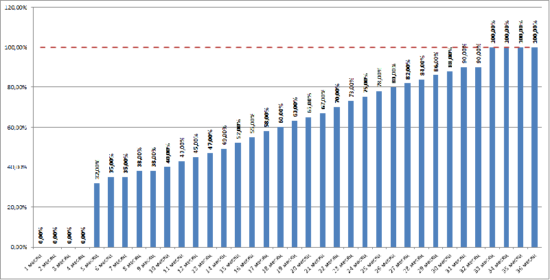 Ожидаемый уровень объемов на 100 % представлен следующим графиком:
