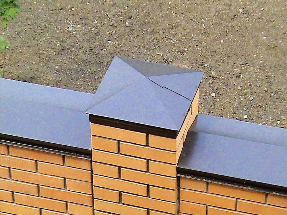 Иногда защитные колпаки делают из кровельного материала, которым покрыты здания на ограждаемом участке