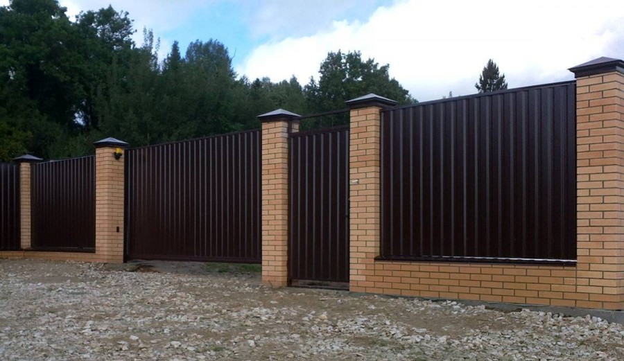 Расход материалов для забора из кирпича и профнастила своими руками: