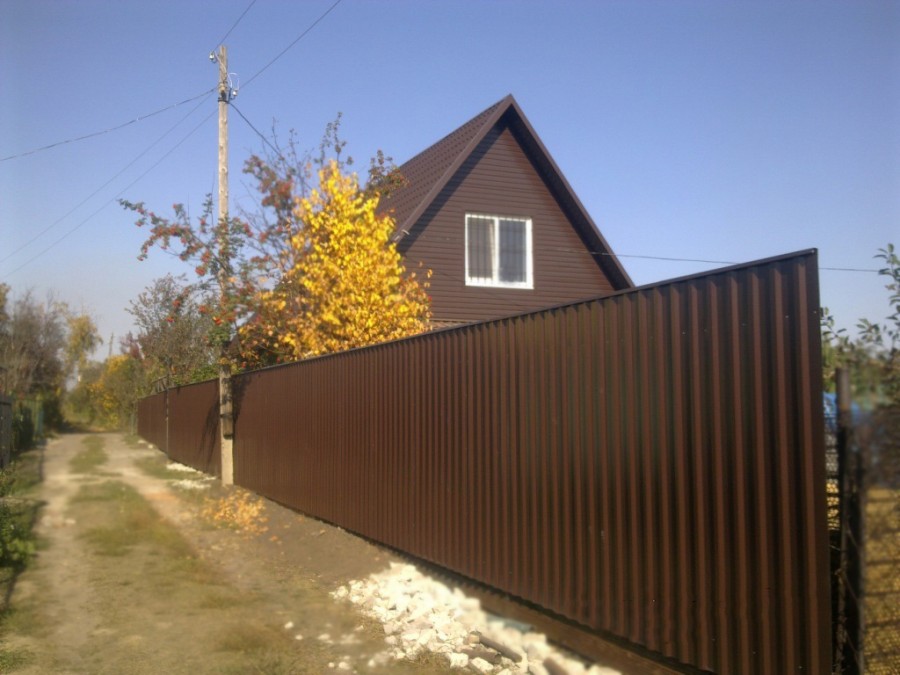 Вы должны определиться с выбором профлиста. Можете посмотреть фото забора из профнастила в интернете. Все зависит от необходимых размеров.