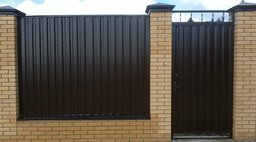 Забор с профнастилом — это экономный, но не менее надёжный вариант. Он стоит значительно меньше, но при этом выглядит также строго и стильно. Ограждение из профнастила обладает парусностью и поэтому для строительства потребуется сооружение надёжного и прочного каркаса.