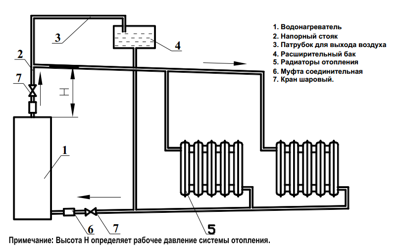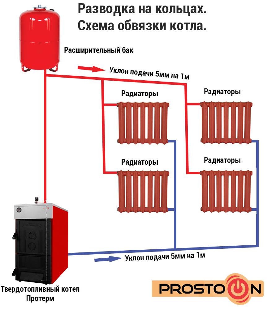 Задача котла – нагревать воду, которая движется по трубам к отопительным батареям. Остывшая жидкость по обратному ходу возвращается в котел и схема зацикливается.