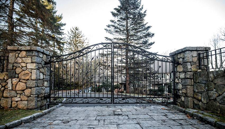 Парадный вход в прямом смысле этого слова обеспечат кованые ворота в стиле барокко или ренессанс. Они придадут торжественности любой усадьбе. Чаще всего такие кованные элементы декора, как беседки, качели, лавочки, и, конечно, ворота, выполняются в большим количеством дополнительных элементов, чаще всего спиралей и завитков.